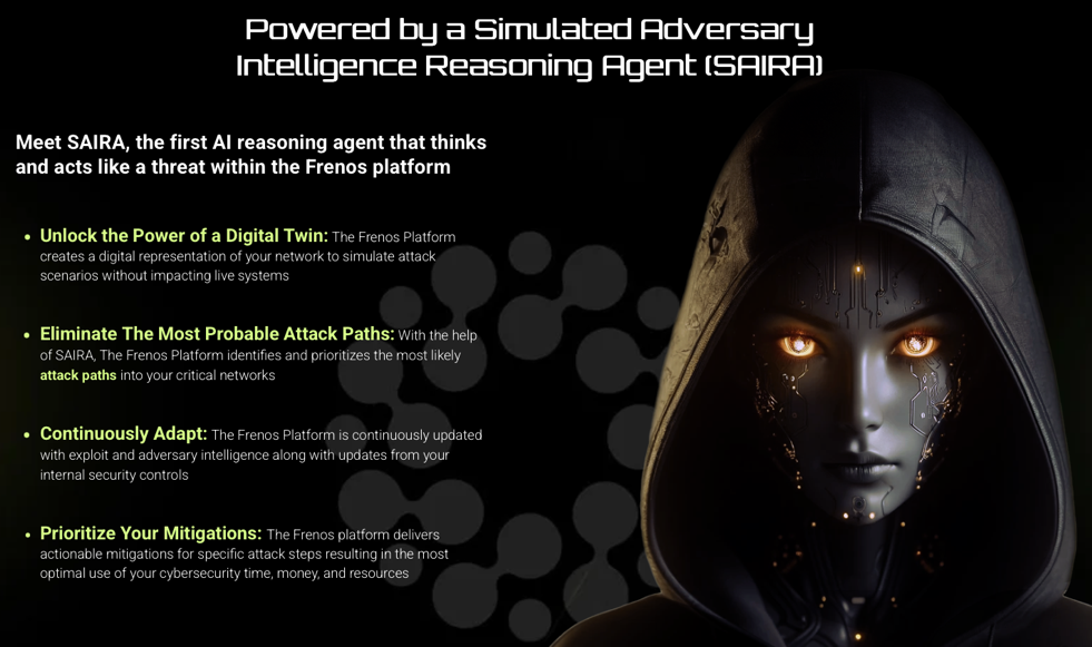 - Frenos is an emerging player and unique among these companies by using the information provided by other cybersecurity tools2 instead of actively monitoring the network themselves. Like the others, they refer to their Platform in marketing and focus on prioritizing risk reduction activities based on real-world threat scenarios and tailored advice based on potential attack paths.