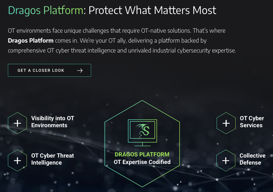 - Dragos has positioned itself as a Platform providing both OT cybersecurity products and services. They emphasize threat intelligence, proactive threat hunting, and integrated incident response.